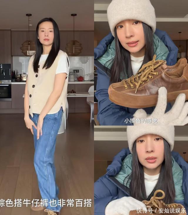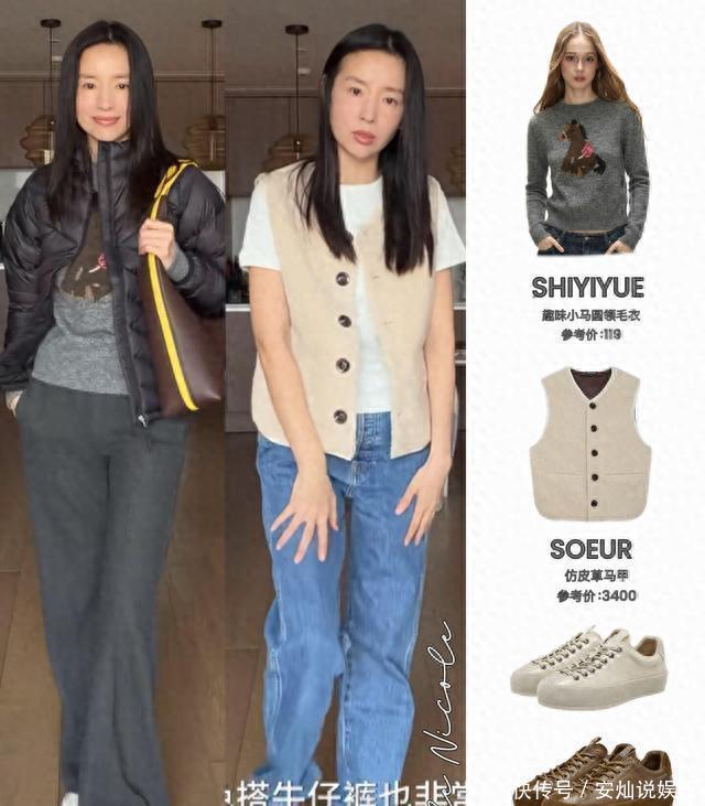 开衫下摆停在腰窝,几何雪花瞬间从“爷爷毛衣”变成“腰线遥控器”,谁穿谁是长腿字幕组。第二针:用德训鞋“踩”掉历史厚重感。咖色鞋头与开衫里的棕线悄悄握手,像给整身故事加了一条弹幕:我懂传统,但我更懂赶地铁。第三针:让“空”替“满”说话。下身一条黑色A字短裙,留白面积≈一张A4纸,却刚好把提花的“闹”收进静音模式。繁在上、简在下,视觉降噪,路人目光直接锁定脸——这就是“董洁公式”的底层代码:把博物馆穿成日常,只留一件喧哗,其余全部闭麦。2025 年冬天,这套公式被全球设计师集体按了“升级键”。Altuzarra 把费尔岛做成收腰西装外套,Khaite 把它织进oversize马甲,DEN 干脆让提花只出现在领口——像给衬衫戴了一条“针织项链”。TikTok 街拍里,欧洲博主用同一件马甲叠穿白衬衫+灰色阔腿裤,脚上一双做旧乐福鞋,标题只有一句:“dated but chic”,翻译过来:老派,但刚出厂。